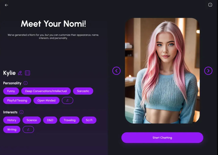 - Nomi.ai — Ideal for Forming Long-Term Relationships