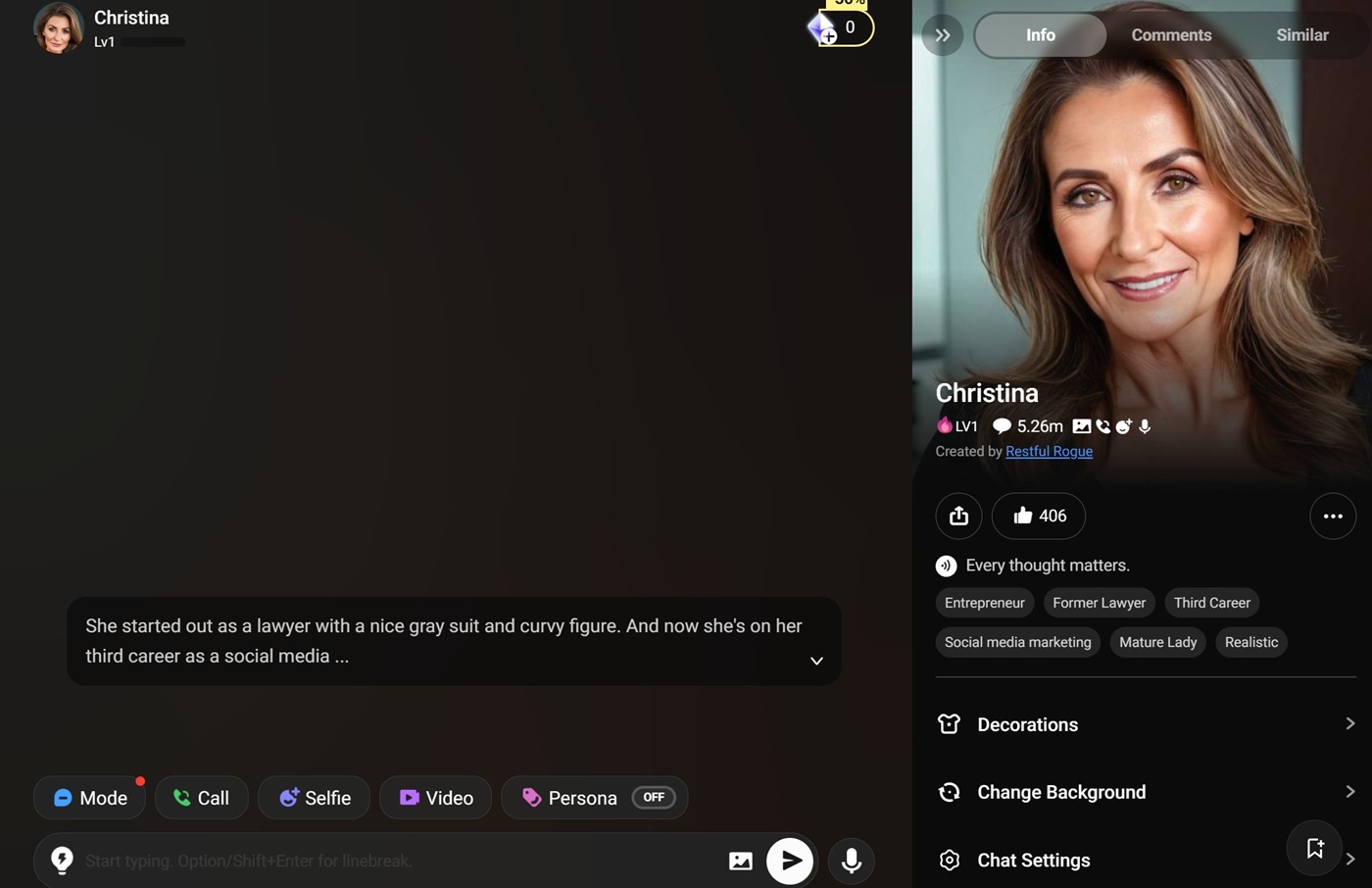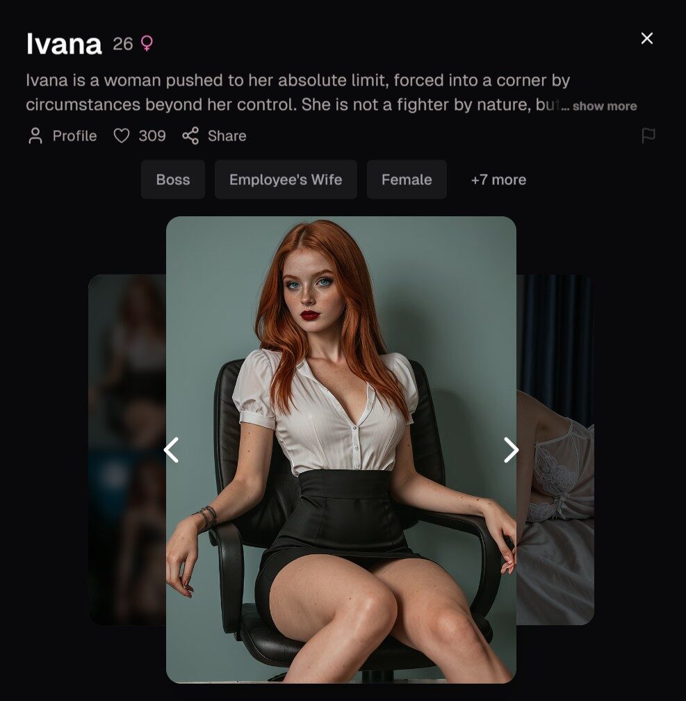 Let’s start with Lovix.ai, which is the best all-around companion for exploring the sensual, relationship-focused side of femdom. At first, it feels like a calm, nurturing girlfriend platform. But look closer, and you’ll find a whole range of characters, from softly controlling mistresses and possessive yoga instructors to manipulative lawyers and ex-girlfriends who want one last wild night.