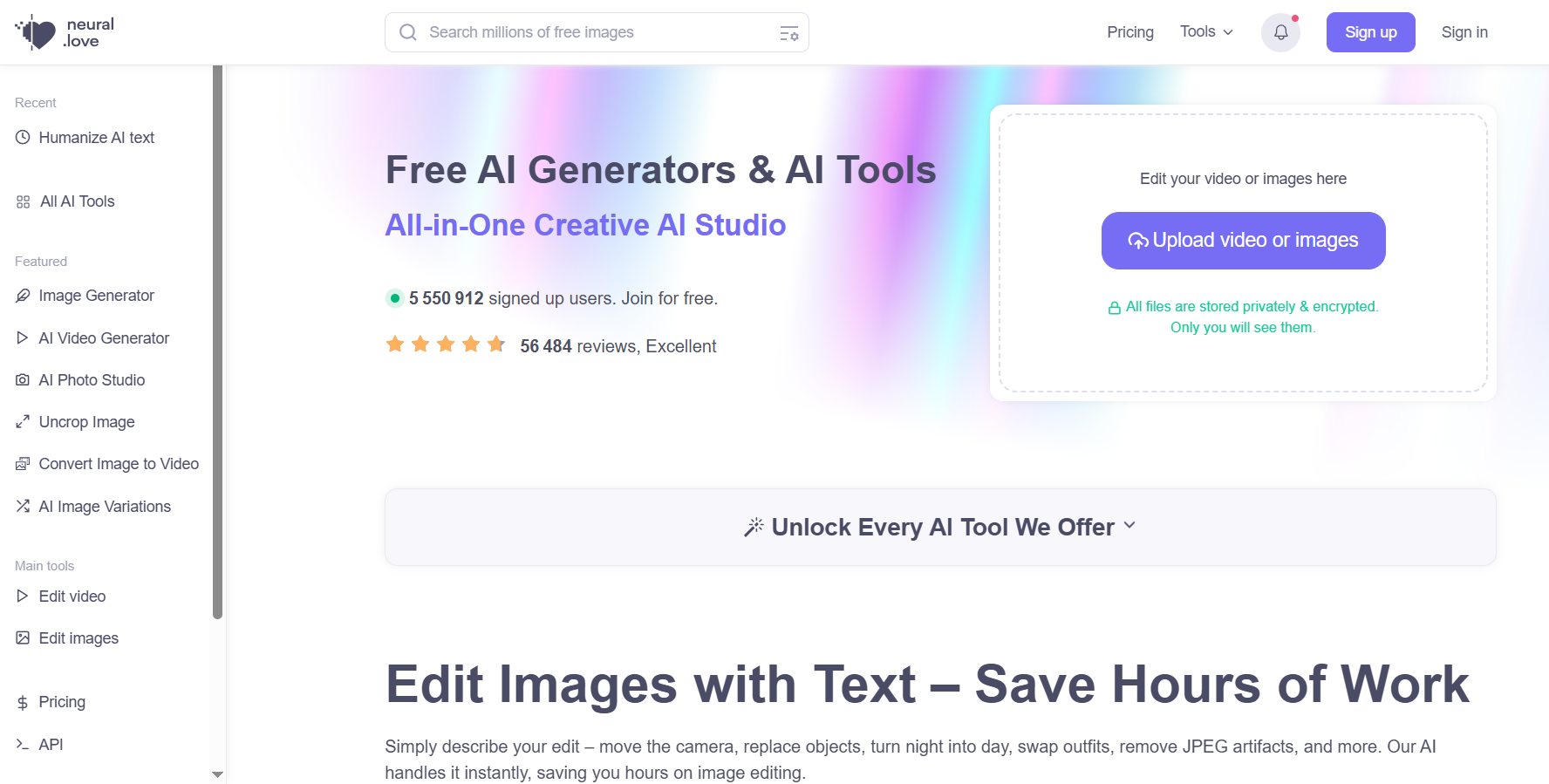 | Neural.love | Advanced AI image generation and creative visual tools | Limited generation credits | Pro: €0.09/credit (monthly) €0.08/credit (yearly) Pay As You Go: €0.17/credit |