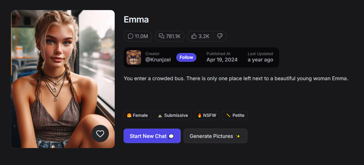- Functionality: Community-driven character library for creative and fantasy roleplay.