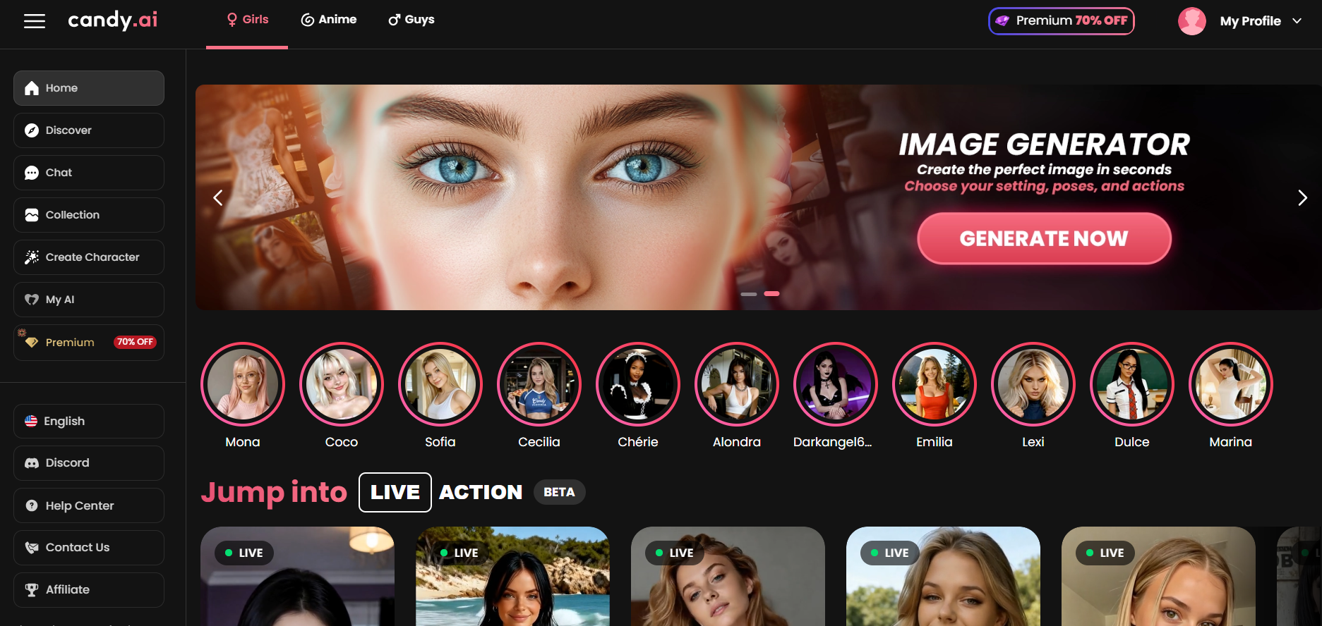 - Functionality: The platform has a straightforward interface, so you can quickly generate or choose a character and start interacting.