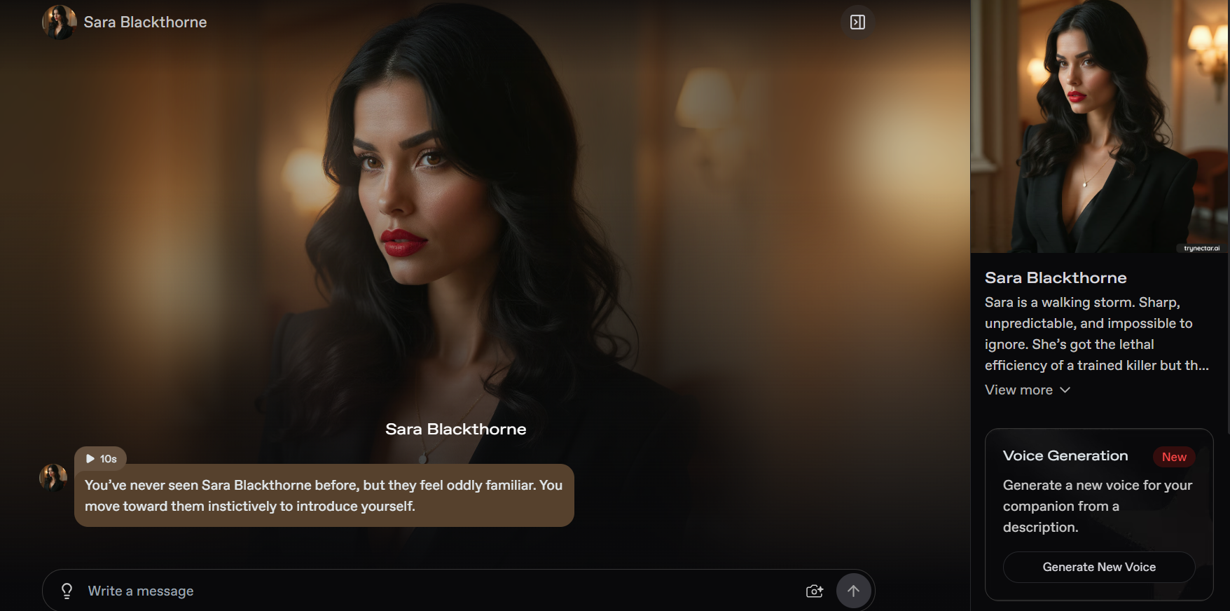 | Nectar.ai | Emotionally grounded chat, realistic responses, image generation | Basic messages and limited features | Free tier, paid plans from $14.99 per month | Users who value smooth, natural conversation |