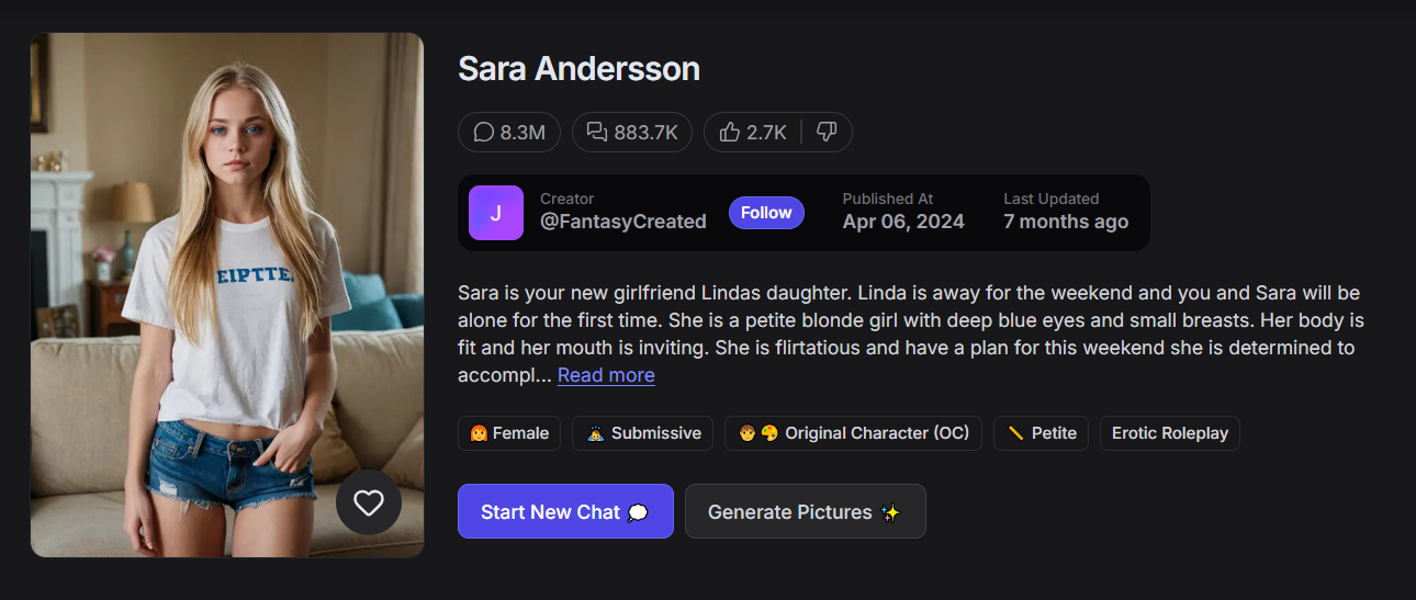 - Functionality: The platform has a straightforward interface, so you can quickly generate or choose a character and start interacting.